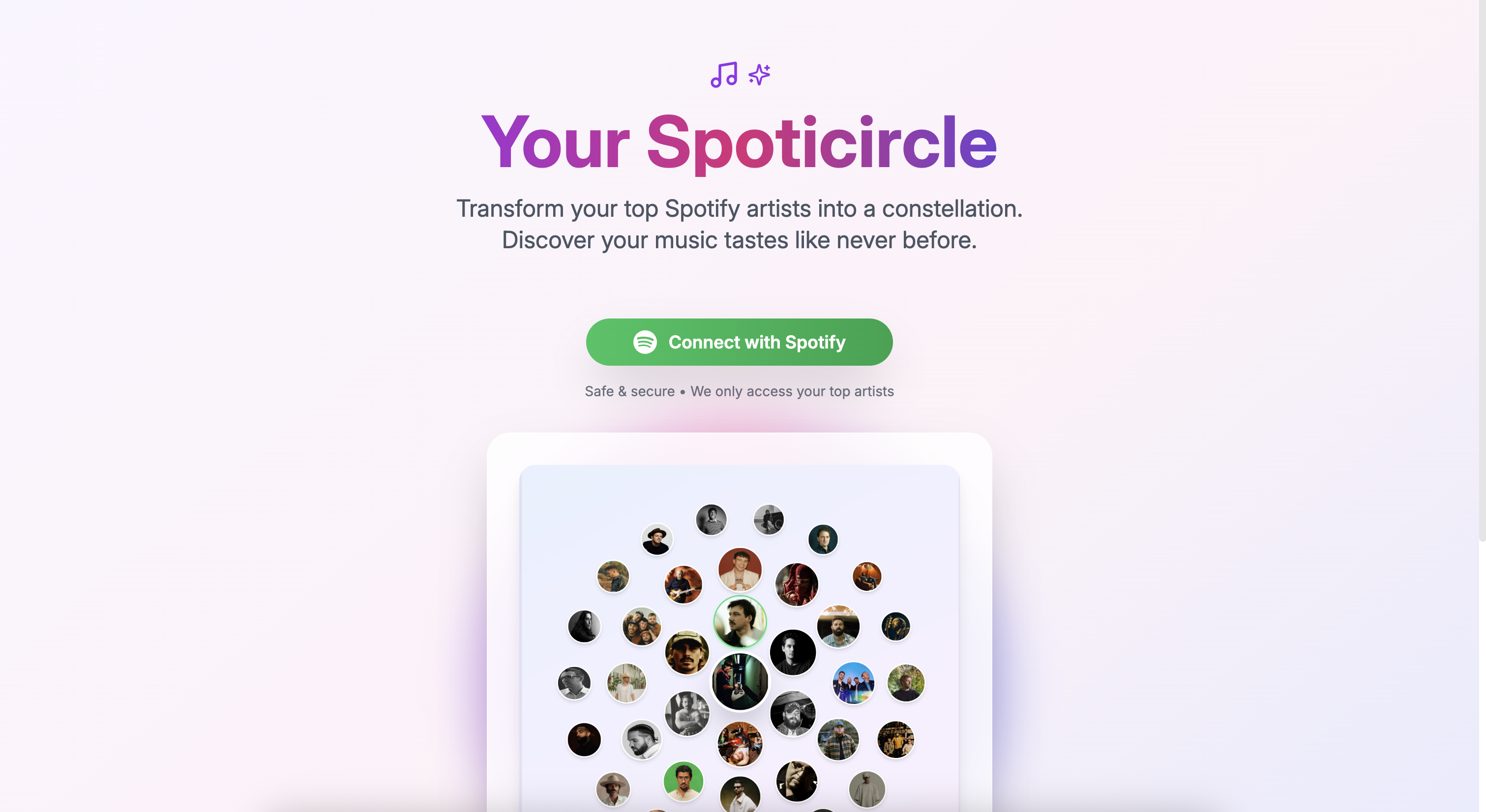 Spotifcircle transforms spotify data into constelations. Private due to API limitations.